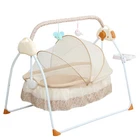 Welcome Description If you are a mother who is tired of coaxing your baby to sleep, quieting your crying baby down, or having little time for yourself, this baby cradle swing will be the good news for you. With its multiple functions, premium materials, high safety, and various control methods, this cradle swing can give your baby a comfortable sleep and a pleasing paradise of playing. Embrace it, and free your hands now! Key Features Baby Trick: With built-in 12 songs and Bluetooth&USB connection functions, you can play music and early childhood stories for your baby. Its 5 swing speeds also give your baby different feelings and allow him/her to sleep faster. Free up Your Hands: Putting your baby in a bassinet with steady vibrations and songs can lighten your load, and say goodbye to the hassle of holding your child all the time. Premium Material: This baby cradle swing uses skin-friendly, sweat-absorbing, and breathable fabric, making it versatile for all seasons and pleasing for babies. With ABS and baking paint steel pipe, this product is durable and sturdy. Reasonable Capacity: The basket's inner size(34.25*20.07*7.48 inches) is suitable for kids younger than 18 months to stretch freely. The steel pipe frame with a triangle and H-shaped structure makes the cradle swing support up to 55 lbs and prevents it from dumping. Dual Control Methods: You can control and adjust the functions (music playing, swing gears, and timing) with the remote control less than 16.4ft or by pressing the buttons on the cradle, and there are indicator marks and lights for easy operation. Energy-saving: The timing function(8, 15, 30, or 60 minutes) allows vibration and music not to wake the baby and can shut down automatically, improving sleep quality and saving you energy without running for a long time, which is environmental-friendly. Foldable and Portable: With a 10.23" folding thickness, you can easily put it in the gap between the furniture or the trunk of the car, so that the baby can also sleep comfortably when traveling or going out. Comfortable and Reliable: The 34.25"L standard sleeping basket size, thickened cellucotton-filled mattress, and reasonable depth design enable the baby to lie flat 180°, effectively protecting the baby's spine and making the baby more comfortable. High-safety Design: The safety belt and anti-rollover fixing straps at two sides can prevent your baby from falling out of the cradle, efficiently improving safety. Tool-free Installation : You just need to insert and connect two triangular brackets, four L-shaped brackets, and the puzzle toy rack, put the mattress, and install the mosquito net, which is easy to operate without any tools. Easy to Clean: You just need to wash the cloth cover with warm water and dry it in a ventilated place, which is easy to operate. Ideal Gift: If a family member or a friend has welcomed a new life, this baby cradle swing will be an excellent gift for her, of its multifunction and practicability. Details Anti-skid Footpads: The anti-skid footpads can make the cradle swing more stable without slipping and prevent it from scratching the floor. Bottle Stand: It allows for convenient placement and fetch of the feeding bottle. Puzzle Toy Rack: The puzzle toy rack with two adorable toys can effectively exercise the baby's vision and hand dexterity. U-Shaped Pillow: Our U-shaped pillow filled with cellucotton has enough elasticity to effectively reduce the possibility of deviated head and flat head. Breathable Mosquito Net: The semi-thickened fully enclosed mosquito net can protect the baby from direct sunlight and mosquito bites. USB Cable : The equipped 5.9ft USB cable allows you to connect this product to a power supply at home or use a power bank for charging outside at a wider distance. Application It can be used to coax your baby to sleep and quiet your crying baby indoors and outdoors. It is also suitable for playing and listening to songs and stories in this baby cradle swing. Specifications Material: ABS, Steel Pipe, Fabric Surface Treatment: Baking Paint Style: Electric Cradle Mounting Type: Free-standing Assembly Required: Yes Timing Function: 8, 15, 30, 60min Swing Speed: 5 Gears Adjustable Battery: 1*CR2025 Lithium Cell, 3V (Not Included) Remote Control Distance: 5m/16.4ft Applicable Age: 0-18 Months Load-bearing Capacity: 25kg/55 lbs USB Cable Length: 1.8m/5.9ft Mat Thickness: 2cm/0.78inch Folding Thickness: 26cm/10.23inch Basket Size: 87*51*19cm/ 34.25*20.07*7.48inch Expanded Size: 100*71*90cm/39.37*27.95*35.43inch Package Size: 91*41*14cm/35.8*16.14*5.5inch Net Weight: 5.6kg/12.34lbs Gross Weight: 7.15kg/15.76lbs Package Included 1* Baby Cradle Swing 1* Bottle Stand 1* Controller 1* USB Cable 1* English Manual Notes The battery for the remote controller is not included, you need to prepare one lithium cell CR2025 3V. The swings should be placed on the stable ground without slopes. This product must be assembled by an adult. If it is damaged, please do not use it. When assembling, and disassembling, check whether the parts are damaged, and do not discard small parts. After installation, the bracket must be fully extended, the belt at the bottom of the cradle must be fixed, and there is enough space to swing without obstacles. A baby younger than 3 months has weak adaptability and is easy to cry at first. Please don't turn on the motor at first and let your baby adapt slowly. The main engine is driven by gears. When shaking, there will be a sound of the clock moving. You can adjust the gear according to the weight of the child. If the child is very light, the customer can turn on 1-2 gears. Please do not put children on the swing independently, adults should stay around them. Please do not attach extra ropes or heavy objects to the swing to prevent the danger of falling. Please do not use or store this product near a fire source. Please read the operating manual completely before use. And pay particular attention to the safety instructio