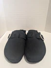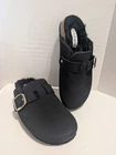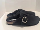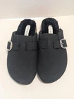 All man made materials. Size 8.5. Super soft faux fur lined. Faux suede material with buckle accent.