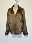 New York & Co. Stretchy Satin Soft Long Sleeve Blouse Shirt Sz XL Bronze Excellent Condition See Pictures & Measurements