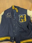 New York Yankees Stadium Jacket 1960s Style Oversized Official Fan Gear Features Specifications ```html New York Yankees Stadium Jacket 1960s Style Oversized Official Fan Gear Brand Name: New York Yankees Product Type: Stadium Jacket Color: Navy and Beige Material: Wool and Polyester Condition: Pre-owned with minor pilling, wear, and stains Other Features: Embroidered NY logo, oversized fit, retro 1960s design This stylish New York Yankees Stadium Jacket captures the essence of 1960s fashion with its oversized fit and classic color combination of navy and beige. Made from a durable blend of wool and polyester, this jacket is not only comfortable but also perfect for showing off your team spirit. The embroidered NY logo adds a touch of authenticity, making it a must-have for any dedicated fan. Please note that this is a pre-owned item and may have minor imperfections such as pilling or small stains, which are typical for vintage clothing. Check the images for details. ```