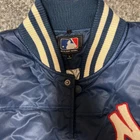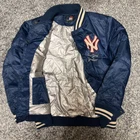 New York Yankees Stadium Jacket Navy MLB Baseball Size Large, No Stains Features Specifications New York Yankees Stadium Jacket - Navy - MLB Baseball - Size Large Brand Name: New York Yankees Product Type: Stadium Jacket Color: Navy Size: Large Condition: Excellent, no visible stains Other Features: Official MLB merchandise Show your support for the New York Yankees with this stylish navy stadium jacket. Perfect for baseball fans, this jacket is in excellent condition with no visible stains. Made for comfort and style, it features the iconic Yankees branding and is an essential addition to any fan's wardrobe. Whether you're at the game or out on the town, this jacket will keep you looking sharp while representing your favorite team!