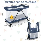 Color: Navy Material: Metal, Polyester Fabric, Sponge, Oxford Cloth Overall Dimension: 46" x 25.5" x 30.5" (L x W x H) Folded Dimension: 25.5" x 9" x 36.5" (L x W x H) Mattress Dimension: 45.5" x 22.5" x 1" (L x W x Thickness) Weight Capacity: 66 lbs Net Weight: 21 lbs Suitable Age: 0-3 Years Old Package Includes: 1 x Foldable Baby Playard 1 x Instruction ▌ PRODUCT DETAILS: Description: This portable baby playard with a comfortable mattress is suitable for 0-3 years old! Made of a heavy duty metal tube frame, soft & durable fabric and 4-sided breathable mesh net, this baby playpen offers a stable, cozy and secure space for your babies to sleep, stand, play, etc. Besides, the removable mattress filled with high-density sponge and fiber board ensures great softness and firm support. And the zippered cover can be easily removed and washed. What's more, featuring a quick folding design, this baby travel crib is easy to store and carry, saving plenty of space in your car trunk or bedroom. You can take it outdoors for a picnic, travel and more. Features: Sturdy metal tube frame ensures strong stability and load capacity The soft and breathable mattress provides a comfortable sleep 4 mesh sides offer better ventilation and visibility Removable & washable cover for easy cleaning Anti-slip feet provide added stability and floor protection ASTM & CPSIA certification ensures high security Foldable design for easy storage and carrying Designed with round corners for safety Specifications: Color: Navy Material: Metal, Polyester Fabric, Sponge, Oxford Cloth Overall Dimension: 46" x 25.5" x 30.5" (L x W x H) Folded Dimension: 25.5" x 9" x 36.5" (L x W x H) Mattress Dimension: 45.5" x 22.5" x 1" (L x W x Thickness) Weight Capacity: 66 lbs Net Weight: 21 lbs Suitable Age: 0-3 Years Old Package Includes: 1 x Foldable Baby Playard 1 x Instruction ▌ Contact & Returns: If you have questions about purchases from us, please feel free to contact us through eBay's Message Center. Items should be returned in their original product packaging and all accessories in the original shipment must be included if you would return the item. ▌ Shippment: • Free Standard Shipping on all items. • All orders are shipped out via UPS, Fedex, USPS or LTL. • Transit time is 2-7 business days varying on customer’s location to fulfillment center. • Tracking numbers will be automatically updated once order is shipped. • We only ship to the Lower 48 States, no current shipping to Hawaii, Alaska, Puerto Rico, nor Guam. • We do not ship to FPO, APO or PO Boxes.