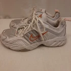Nike 310184 Women's Shoes Training Running Size 6.5 Peach White Non Marking READ In good pre-owned condition may show signs of wear from use/handling/storage/display. Please view all pics for condition/details/flaws/issues. SOLD AS IS In fair/poor pre-owned condition may show signs of wear from wearing/use/handling/storage/washing please view all photos for details. These shoes have some flaws there are many dirty marks on them please see photos 9-19, There is some separating going on one shoes please see photos 13 & 14, The bottoms look in really great shape not much wear please see photo 6.