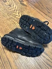 These Nike Air Goadome toddler shoes in black are perfect for your little one's active lifestyle. With a lace-up closure, moderate cushioning, and waterproof features, these sneakers are perfect for walking and activewear. The leather outsole and upper material provide durability and support, while the moisture-wicking lining keeps little feet dry. From the Nike Air product line, these shoes are designed for unisex baby and toddlers with UK shoe size 4.5 and US shoe size 5C. The Nike brand is well-known for quality and these shoes are like new. Get these athletic sneakers for your little one's next adventure.