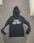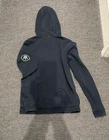 Elevate your activewear game with this Nike Barstool Pullover Hoodie in black and white, size medium. The hoodie features a drawstring closure and a round neckline, with long sleeves and a fleece fabric type for the winter, fall, and spring seasons. It also comes with hooded and pocketed features, making it the perfect hoodie for gym and cross-training sessions, as well as running and jogging. The Nike Sportswear product line ensures the hoodie is made with high-quality polyester and cotton materials, and the logo accents add a touch of style to the overall design. Is a men's medium although feel like runs small