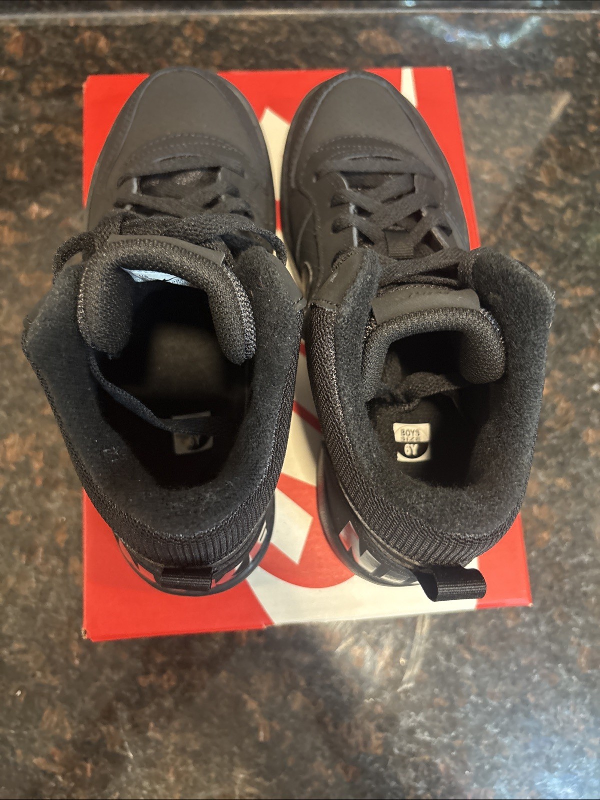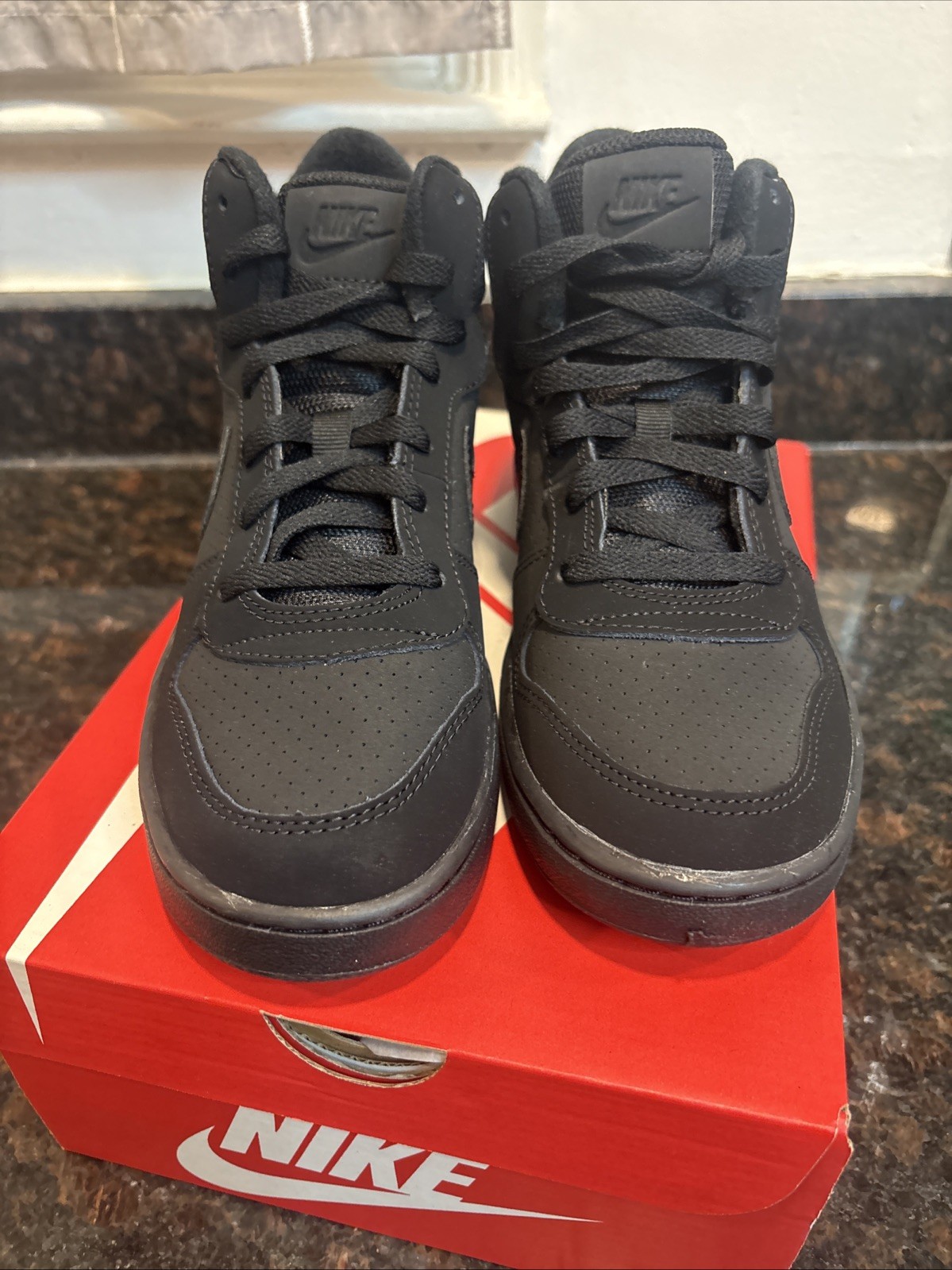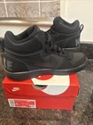 The Nike Court Borough Mid GS Trainers 839977 Sneakers Shoes in size 6 for Youth Boys are a stylish and comfortable option for young boys. Featuring a mid-top shoe shaft style, these black trainers are made of synthetic fabric with a synthetic insole for durability and easy maintenance. With the iconic Nike brand, these casual sneakers are perfect for everyday wear and come in a classic sneaker style. These shoes are designed for boys and offer a combination of style and functionality, making them a must-have addition to any young boy's wardrobe. Brand new in box!!!