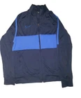 Nike Dri Fit Men's Full Zip Jacket Size L Length: 31in Pit to Pit: 22in Sleeve Length: 28in Sleeve Opening: 9in This Nike Dri-Fit track jacket is a multicolor garment with a mock neck, long sleeves, and a full zip closure. Made of polyester, it is machine washable and comes in size L. The jacket is suitable for various activities like gym training, walking, baseball, basketball, and more, making it a versatile and stylish choice for men.