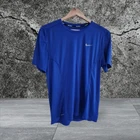 Pit to pit - 20 inches Length - 22 inches Crafted for comfort and performance, the Nike Dri-Fit Running Activewear Top is a must-have for any athlete's wardrobe. This men's large top in a striking blue hue features a round neck and short sleeves, tailored for a regular fit that allows for freedom of movement. The polyester blend fabric is designed to be breathable and lightweight, ensuring you stay cool and dry during intense workouts. The top boasts a solid pattern with a subtle embroidered Nike logo that adds a touch of style to your activewear collection. With its mild compression level, it supports your muscles during various activities, including running, jogging, and cross-training. The Dri-Fit technology is functional across all seasons, making it a versatile choice for year-round gym training and sports activities.