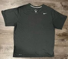 This Nike Dri-Fit Shirt for men is the perfect choice for any active occasion. With a comfortable crew neck and short sleeves, it's made from a lightweight, blended fabric that keeps you cool and dry. The dark gray color is accented with the iconic Nike logo, and the shirt is machine washable for easy care. Ideal for gym and cross training, crossfit, running and jogging, this shirt is an athletic fit that will move with you. It's made of polyester and is designed for fall, spring, and summer seasons. The pullover style and band collar add to the overall look and feel of the shirt. This Nike Dri-Fit Shirt is a must-have for any sports enthusiast.