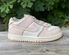Nike Dunk Low 9C Toddler Shoes Crib Infant Orange Pearl CW1589-101. These shoes are perfect for any occasion whether it be travel, activewear, party or casual. The shoes are made with a blended fabric with lace up closure and embroidered logo accents. The outsole material is rubber with a moderate cushioning level and features like lightweight, comfort and breathability. The shoes have a colorful, athleisure and classic theme with a low top shoe shaft style. The upper material is leather with a fabric lining material and a foam insole. The shoes are suitable for walking, school and basketball. They are available in every season, winter, summer, fall and spring. The shoes are unisex baby & toddler with a standard shoe width. This item is used and may show signs of wear. Meaning that the item may have some cosmetic flaws, such as scratches, scuffs, stains, or marks. These flaws do not affect the functionality or performance of the item, but they may affect its appearance. I try to show the condition of the item in the photos. I value you and I strive to provide excellent customer service. Please contact me for any questions!