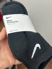 ***damage: peeling even though never worn*** The Nike Everyday Kids Dri-Fit Black Sock is designed for unisex kids aged 3 to 5 years. This sock is from the Nike brand and features a comfortable and moisture-wicking Dri-Fit material to keep little feet dry and fresh. The sock comes in a classic black color and is new with tags, making it a stylish and practical addition to any child's wardrobe.