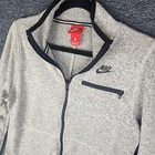 Nike Full Zip Fleece Summit Jacket Heather Grey & Black Zipper Size Large Style Profile: Athletic, Athleisure, Casual, Comfy Machine washable Good used condition - Front Logo has some wear/cracking (see photos for close up) Approx Measurements (taken flat): Pit to Pit: 21in Length: 24in