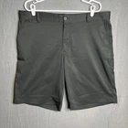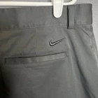 Elevate your golf game with these Nike Golf Black Shorts in size 38. The standard Dri-Fit fabric ensures you stay cool and comfortable while the mid-rise waist provides a flattering fit. The chino style shorts feature a flat front design with a zip closure and slash pockets for easy access to your essentials. Perfect for travel or casual occasions, these shorts are made of lightweight microfiber fabric with easy care and stretch features. The solid black color and Nike logo accents add a touch of style to your outfit. Machine washable and made of polyester material, these shorts are a must-have for any outdoor or sports enthusiast.