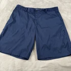 Elevate your golf game with these Nike Golf Dri-Fit Navy Blue Tour Performance Tech Golf Shorts. The solid pattern and dark fabric wash make them perfect for travel and casual occasions. The flat front and button closure add a touch of dressiness, while the polyester, spandex, and 639798-010 material provide a comfortable fit. The shorts have a regular fit and are designed for men with a waist size of 38 inches. They feature a 10 inch inseam and are accented with a Nike logo. The lightweight and stretchy fabric, along with pockets, make them perfect for outdoor sports. Get ready to hit the course with these stylish and functional shorts.