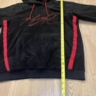 Elevate your activewear game with this Nike Jordan WINGS OF FLIGHT SHERPA HOODIE AH6250-010 in size M. The hoodie comes in a stylish black and red color combination, with embroidered logo accents adding a touch of personality. The drawstring closure and full zip make it easy to put on and take off, while the lightweight and hooded design make it perfect for gym and training sessions, walking, and basketball games. Made with high-quality materials as described in the product line, this hoodie is not only functional but also comfortable to wear. Its long sleeve design and regular size type make it suitable for men of all body types. The Nike Jordan WINGS OF FLIGHT SHERPA HOODIE AH6250-010 is a must-have addition to your activewear collection.