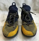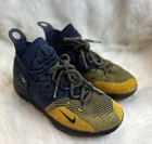 The Nike KD Kevin Durant 11 in size 5Y features a multicolor design inspired by the Chinese Zodiac, with blue and yellow hues creating a vibrant and eye-catching look. These athletic shoes are designed for boys and have a round toe shape with a lace-up closure for a secure fit. Crafted with a synthetic upper material, they offer a comfortable and durable wear for various activities, specifically suited for baseball. The Nike brand guarantees quality and performance, making these shoes a stylish and functional choice for young athletes. Pre-owned, please view photos for exact item condition Cleaned and Laundered Does not come with original box