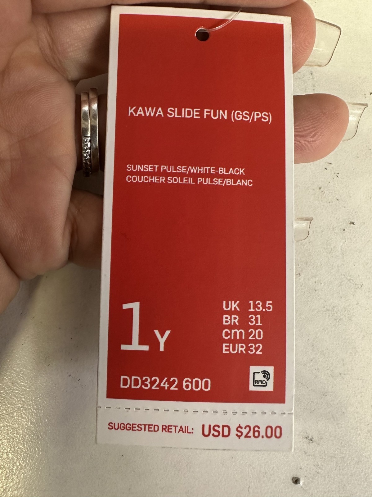The Nike Kawa Slide Fun Kids size 1y in pink is a slip-on sandal perfect for casual summer occasions. Featuring a low top design with a flat heel, this shoe is easy to wear and features a fun theme for kids. Made from synthetic materials, this unisex kids' shoe from the Nike Kawa line is both stylish and durable for outdoor adventures. Perfect for little ones who love to play and stay active in the warm weather.