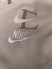 Nike Kid Hoodie Tan Letters All Over Print Sweatshirt L. Condition is Pre-owned. Shipped with USPS Ground Advantage.