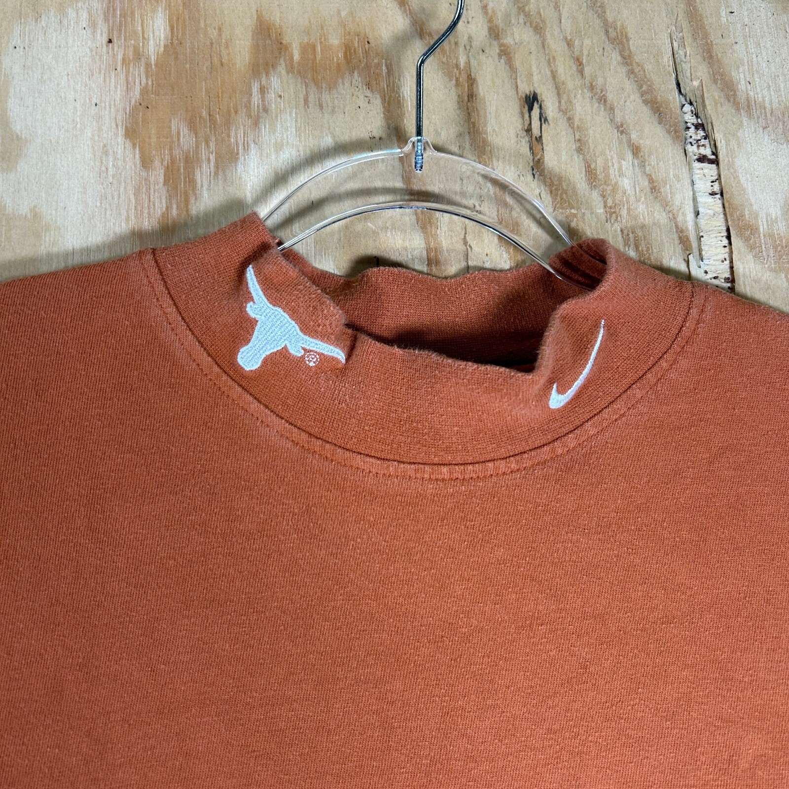 Elevate your everyday style with the Nike Team Sports Long Sleeve Tee, tailored for a regular fit in men's size medium. Crafted from breathable cotton knit fabric, this brown pullover is designed to comfort and support during a variety of activities, including walking, cross-training, and gym sessions. The mock neck silhouette ensures a snug fit, perfect for keeping warm during the chillier months of fall and winter. Details like the embroidered Nike logo add a touch of athleticism to the piece, making it ideal for activewear, casual outings, or even a casual work environment. Its stretch fabric and long sleeves offer flexibility and coverage, while the machine washable garment care ensures easy maintenance. Whether you're hitting the pavement or the weights, this versatile Nike tee is ready to go right along with you. SKK: AM-50-04