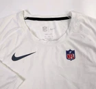 Elevate your game with the Nike NFL On Field Dri-Fit Compression Top in a crisp white, designed for the modern athlete. Crafted from 100% polyester, this top features a blend of breathable, lightweight, and moisture-wicking fabrics to keep you comfortable during the most intense workouts, whether that be football, running, or gym training. The athletic fit ensures freedom of movement, and the crew neck with pullover closure provides a snug, secure fit. The solid white design is accented with a secondary NFL logo, adding a touch of professionalism to your activewear collection. Short sleeves make it ideal for warmer weather or layering under jackets. Not just for sports, this compression top is perfect for anyone seeking a blend of style and performance. Which comes from Cambodia, ensuring the quality and craftsmanship you expect from Nike NFL On Field apparel.