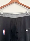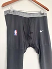 Breathable professional quality sports mens leggings -Nike brand logo on leg -nba logo on leg -black breathable fabric with grey waistband -Made in Cambodia -polyester and spandex Tags: Basketball, gym, sports, plus size, breathable, lightweight, gym, workout, active, athleisure, stretch, comfort, layer, transitional, plus size