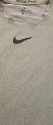 This Nike Pro Dri-Fit Men's Tee is a solid gray short sleeve shirt designed for athletic performance. Made of a polyester-spandex blended fabric, it features a crew neck and pullover closure. The shirt is lightweight, moisture-wicking, and breathable, making it ideal for activities like gym training, cross-training, bodybuilding, and running. With its athletic fit and Nike Pro branding, this XL tee is a versatile choice for sports and workouts. In good condition!