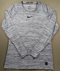 Fit: Athletic Accents: Logo Model: Nike Dri-Fit Country/Region of Manufacture: Jordan Neckline: Crew Neck Pattern: Striped Vintage: No Sleeve Length: Long Sleeve Character: N/A Size Type: Regular Fabric Type: Blended Fabric Brand: Nike Color: Gray Theme: Logo, Outdoor, Sports Style: Pullover Department: Men Season: Fall, Spring, Summer, Winter Seller Notes: “in good condition” Material: Polyester Blend Compression Level: Moderate Occasion: Activewear Performance/Activity: Running & Jogging Product Line: Nike Pro Features: Breathable, Lightweight, Stretch Size: L Fabric Wash: Medium Closure: Pullover Type: T-Shirt