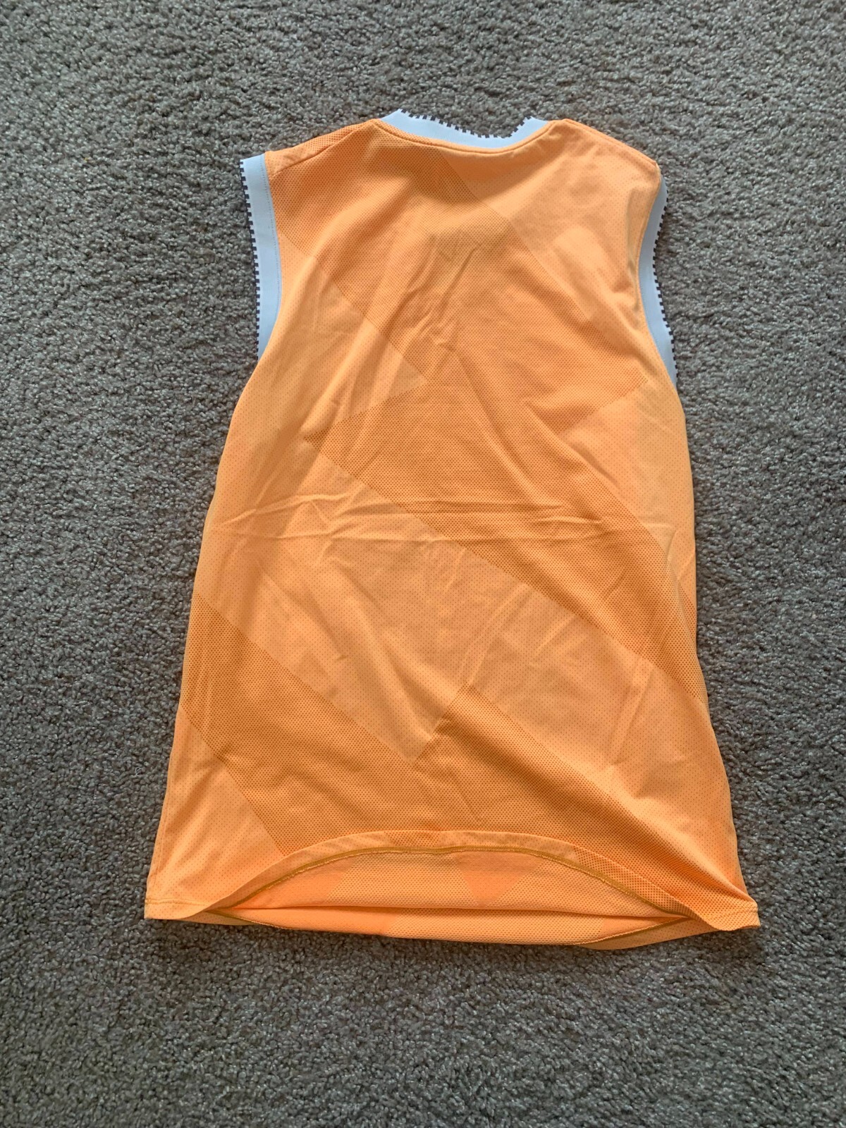 This Nike Rafa Nadal sleeveless shirt is a must-have for tennis fans and athletes alike! The bold orange color and iconic bull design make it stand out, while the Aeroreact fabric keeps you cool and comfortable during intense matches. The fit is perfect—lightweight, breathable, and unrestricted for full mobility. Whether you're hitting the court or just want a stylish, sporty look, this tank delivers. The V-neck adds a classic touch, and the quality is top-notch, just like Rafa’s game. Highly recommend for performance and style!
