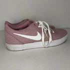 Elevate your activewear game with these Nike SB Check Solar sneakers. Designed with a blend of synthetic fabric and a rubber outsole, these shoes provide arch support, cushioning, and comfort for various activities such as gym and training, walking, school, and running. The adjustable lace-up closure and cap toe design ensure a secure and comfortable fit, while the lightweight and breathable features make it perfect for all seasons. The pink and white colorway with logo accents and solid pattern add a classic and modern touch to any outfit, making it suitable for casual and workwear occasions. These Nike SB Check Solar sneakers come in women's US shoe size 10.5, UK shoe size 8, and EU shoe size 42.5. Get ready to step out in style with these versatile and high-performance sneakers.