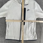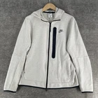 Elevate your casual style with this Nike Sportswear Tech Revival Fleece Hoodie Jacket in oatmeal. Designed with a solid pattern and full zip closure, this regular fit hoodie features embroidered logo accents and a hood for added warmth. Made from a cotton blend fabric, this long-sleeve hoodie is perfect for basketball, cross training, and gym & training activities. The Nike Sportswear Tech Revival Fleece Hoodie Jacket is a classic piece that can be worn for sports, college, or casual outings. This hoodie is from the Nike Sportswear product line and is made in Vietnam. Get ready to experience comfort and style with this versatile hoodie.