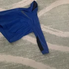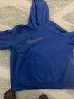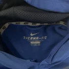 The Nike Sweater is a men's XXLarge pullover hoodie sweatshirt in a solid blue color. Made from a cotton blend knit fabric, this hoodie features a drawstring closure, long sleeves, and a mock neck with the Nike logo as an accent. The Therma-Fit technology provides warmth and comfort, making it suitable for all seasons and various outdoor and sports activities like walking, golf, basketball, and running.o