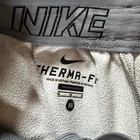 Elevate your activewear game with these Nike Therma-Fit sweatpants. Designed with a drawstring closure and adjustable waist, these pants ensure a comfortable fit for any occasion, whether it's a casual day out or a gym session. The gray fleece fabric with Nike logo accents and solid pattern make these pants a versatile addition to your wardrobe. Featuring pockets and a straight leg style, these pants are perfect for outdoor, athleisure, and sports activities like running, walking, basketball, and school. The Nike Activewear character family and Nike Therma product line add to the brand's reputation for quality and style. Get your hands on these athletic fit pants in size medium today.