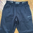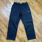 Nike Therma Training Pants Black Men's Size Large. In good used condition with no holes or stains! The Nike Therma Training Pants in black are designed for men in size Large. Made of 100% polyester fleece, these pants feature a drawstring closure and elastic waist for a comfortable fit. The pants are suitable for various occasions such as travel, activewear, and casual wear, with moisture-wicking and temperature control properties to keep you dry and comfortable during activities like cycling, soccer, basketball, and more. The pants also have pockets, adjustable waist, and are machine washable for easy care. Perfect for those seeking athleisure style with performance features.