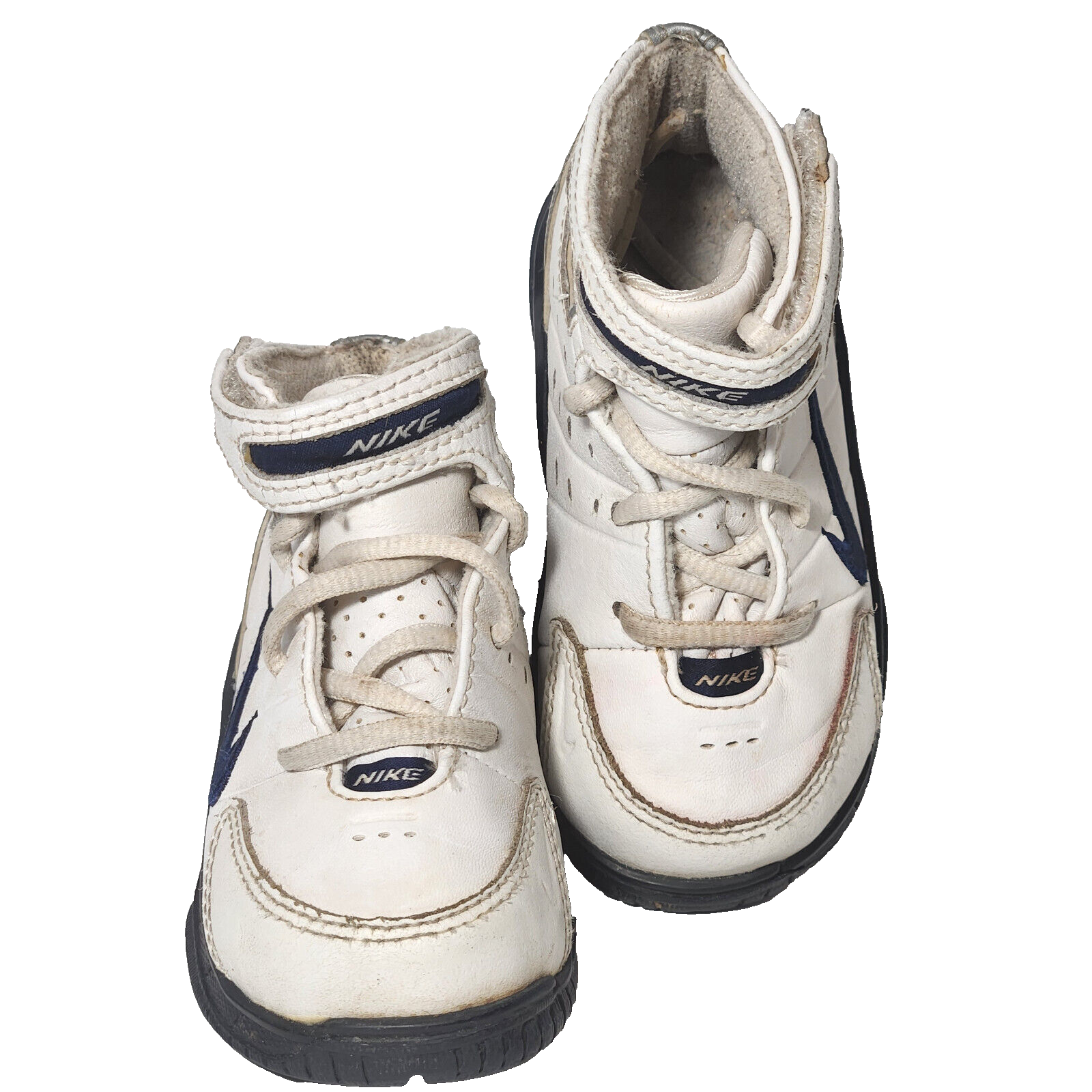Nike Hightops Toddler Shoes Size 5C Sneakers White Metallic Platinum Hook & Loop Strap Lace Up