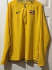 Crafted for athletes and active individuals, the Nike Pro Elite Jersey is a prime choice for those who value performance and style. The Men's size large jersey features a vibrant yellow hue, complemented by the classic Nike swoosh, and is designed with a 1/2 zip closure for easy on and off. The long sleeves and breathable fabric make it an ideal pick for both spring and summer seasons, ensuring you stay cool and comfortable during your runs or soccer practice. The jersey is part of the Nike Pro Elite product line, recognized for its quality and durability. It's fashioned from polyester and has a medium fabric wash, offering both versatility and longevity. With its solid pattern and athletic fit, this jersey is a functional yet fashionable addition to any activewear collection. Whether you're jogging through the park or sprinting on the field, this jersey is tailored to support your active lifestyle.