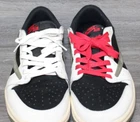 Pre- Owned Nike Women’s Air Jordan 1 Low Travis Scott Olive Size-10.5W/9M Good condition, Some signs of usage can be seen around the shoes. No major damage to ths shoes. Signs of usage may also be seen on the bottom of the shoes. NO BOX. SNEAKERS ONLY PLEASE SEE ALL PICTURES BEFORE PURCHASING. WHAT YOU SEE IN THE PICTURES IS WHAT YOU WILL BE RECEIVING PLEASE NOTE THESE SHOES WILL GO THROUGH AUTHENTICITY GURANTEE BEFORE BEING DELIVERED TO YOU.