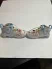 Elevate your child's style with these Nike Air More Uptempo sneakers. The mid-top shoe shaft style and lace-up closure provide a comfortable and secure fit, while the white faux leather upper material adds a touch of elegance. These unisex kids' shoes are perfect for walking, school, and basketball. The colorful theme of the sneakers is sure to make your child stand out from the crowd. With a US shoe size of 12C, these shoes are ideal for kids in this size range. The Nike Air More Uptempo model is a popular choice for athletic shoes, and these won't disappoint.