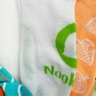 NINTENDO ANIMAL CROSSING VIDEO GAME WOMENS NO SHOW SOCKS • Brand new with tags • Womens shoe sizes 4-10 • No show style • 5 pairs • 1 pair - pastel yellow - Tom Nook • 1 pair - turquoise blue - Tom Nook • 1 pair - white, green - Nook Inc. leaf logo • 1 pair - peach orange, white - leaf logos • 1 pair - pink, yellow - Isabelle • 68% recycled polyester, 30% polyester, 2% spandex