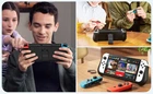 🎮-📌【Compatible for Nintendo Switch 6.2" LCD and 7.0" OLED Model 】This battery charging pack is compatible with Nintendo Switch - 7.0" OLED Model And for Nintendo Switch - 6.2" LCD Model. Please confirm the size of your Switch before purchasing this battery case. 🎮-🔋 【Portable Battery Charger】 Battery case for Nintendo Switch built-in 10000 mAh rechargeable Li-polymer battery pack, Effectively provide 160% extra battery life. Charge the case at night, enjoy a ultra long game time on next day! 🎮-🔋【High-Speed Charging】Support PD & QC 3.0 Fast Charging. 18W/ 3.0A Faster USB Charging for Nintendo Switch only takes about 1.75 hours (Faster than the 3 hours required for the original charge). 🎮-🔋【Foldable Bracket & Card Slot】Stand for Nintendo Switch adapt to a variety of angles, and provides you with ultra Comfortable Grip. Conveniently store 2 game cards with the extra game card slots. 🎮-🔋【Safe & Efficient Charging】Smart chip set will protects Switch from overheating, overcharging and excessive current flow. Precise cutouts and air vents allow you to access all the Switch's features and buttons. Safety Charging Tips: Click once to check battery level even if the case is not in charging mode. Click the power key twice to turn off all indicators and stop charging. Once plugged in, the green fast charging light will turn on to indicate that fast charging is activated. To switch to slow charging, click the power key once while in fast charging mode. If there is no other output within 30 seconds, it will automatically switch back to fast charging. Safety Charging Tips: Click once to check battery level even if the case is not in charging mode. Click the power key twice to turn off all indicators and stop charging. Once plugged in, the green fast charging light will turn on to indicate that fast charging is activated. To switch to slow charging, click the power key once while in fast charging mode. If there is no other output within 30 seconds, it will automatically switch back to fast charging. EXCELLENT HEAT DISSIPATION With 2 cooling holes, it will not heat up even if it is used for a long time. PACKAGING INCLUDES 1 * for Nintendo Switch charging station 1 * User Manual EASY INSTALLATION Easy to install and remove, make you unwilling to let go NEWDERY for Nintendo Switch/ Switch OLED 10000 mAh battery pack: This battery charger pack is compatible with Nintendo Switch/ Nintendo Switch OLED Model. No need for extra carrying cases, there are 2 slots for an extra game cards in for Nintendo Switch power bank to bring along with you on-the-go. Support PD and QC 3.0 quickly charging, with the included USB-A port you can charge any device whilst also charging for Nintendo Switch. Charge for Nintendo Switch and the battery case at the same time at the 50% rate as your Quick charging. No need to take it off the Switch. Enjoy 1.3x extra battery life with the best and the first case battery on the Amazon. for Nintendo Switch case battery is made of premium skin friendly material, comfortable for touching. lightweight design allows to easily travel. 18W FASTER CHARGING PD 18W USB-C input, Support USB quick charge output. It not only quickly power your switch, but also can operates as a standard power bank to power up other smart devices. SAFE CHARGING Capacity: 10000mAh(37Wh) USB-A Output: 5V/1A Type-C Input: DC 5V/9V 18W(Max) Type-C Onput: DC 5V/3A 9V/2A 12V/1.5A MULTIFUNCTIONAL CHARGING Time of Battery fully charge for Switch: 1.75h Time of Battery fully charged:3.5h Time of fully charge for battery and Switch at the same time:5.5h