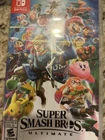 Nintendo Switch with Neon Blue and Neon Red Joy-Con and Super Smash Bros Game