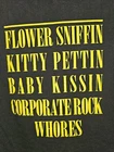 Get ready to rock out in this classic 90s Nirvana Corporate Rock Whores t-shirt from M&O KNITS. Made with lightweight and easy-care cotton knit fabric, this regular fit shirt features a crew neck and short sleeves, making it perfect for all seasons. The double-sided graphic logo adds an extra touch of rock and roll to this medium-sized shirt, making it a must-have for any music lover. Whether you're a fan of Nirvana or just love the graphic print, this shirt is perfect for you. Machine washable and made in Mexico, this shirt is a great addition to any wardrobe. Don't miss out on this opportunity to show off your love for rock and roll with this classic Nirvana t-shirt.