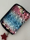 Star keychain slightly chipped see pics. This No Boundaries wallet is the perfect accessory for any woman who loves a little sparkle in her life. The wallet features a colorful rainbow design with sequin accents and comes with a star key chain for added flair. The wallet is brand new and in excellent condition, ready to be used by its new owner. It is perfect for storing all of your important cards and cash, while the sequins add a fun and unique touch to your everyday look. Don't miss out on this stylish and practical wallet, perfect for any occasion.