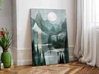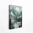 Nordic Abstract Moon Painting, Green Unframed Canvas Print Australian Wall Art