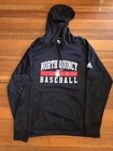 North Quincy Baseball Yakoo Large Hoodie Old Mascot High School Adidas Hoodie looks good as new. Not sure of the material. Feels like cotton/poly blend. No tears or stains. Bit more stylish than a typical hoodie. Weird screen-print on lower back. See photo. Will be shipped in a padded envelope. Approx 28” from top shoulder to bottom Approx 21" pit to pit Approx 25" Sleeve Top to Sleeve End No returns. Comes from a smoke free home. What you see pictured is the item you’ll receive. Check out my other auctions and come back often! Thanks and Cheers.