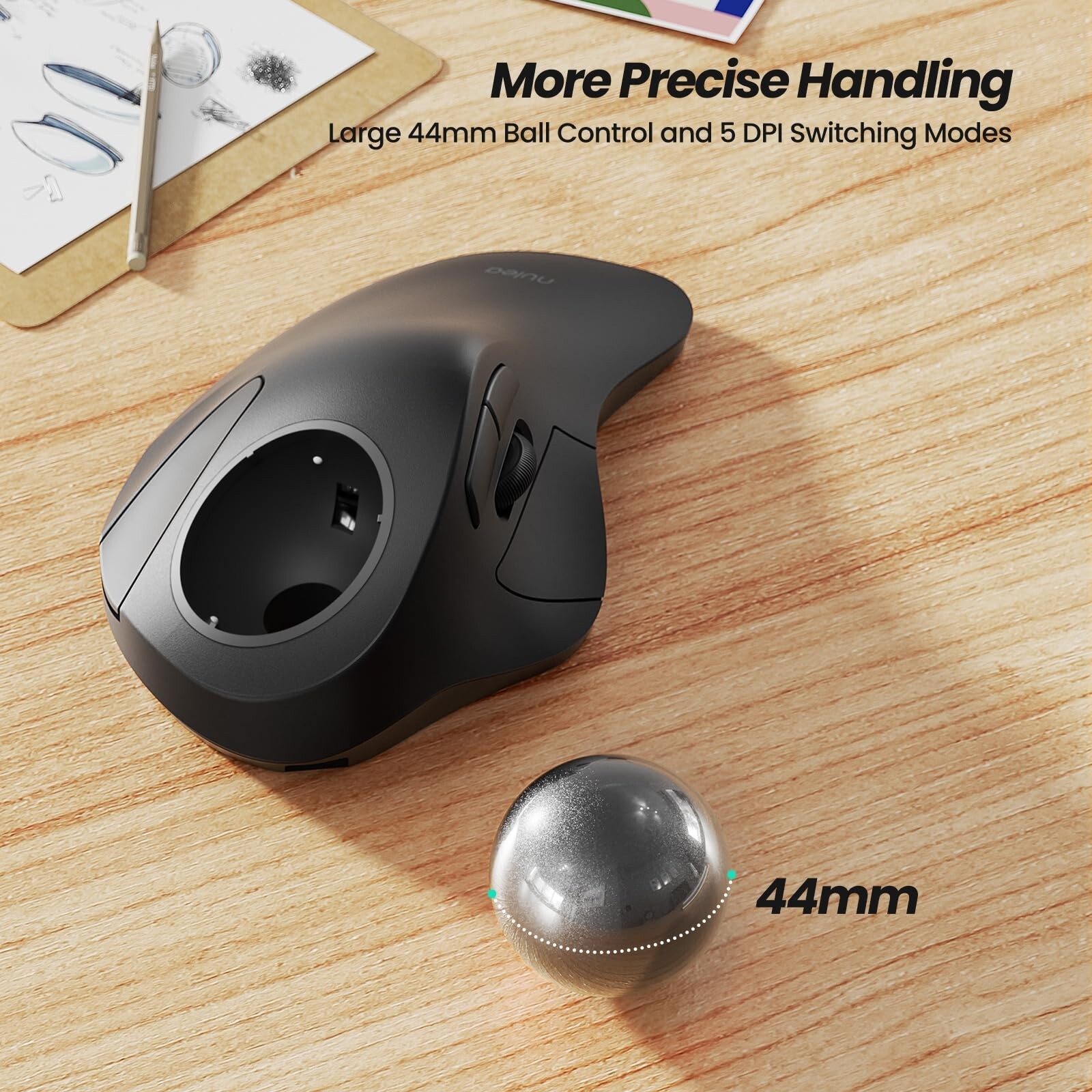 Nulea Wireless Ergonomic Trackball Mouse, Rechargeable, Bluetooth Rollerball Mouse, 44mm Index Finger Trackball, 5 Adjustable DPI, Compatible with PC, Laptop, iPad, Mac, Windows, Android Product Details Color: D-Black Brand: Nulea MPN: M505A UPC: Does not apply EAN: Does not apply Brand: Nulea Color: D-Black Connectivity Technology: Bluetooth Special Feature: Ergonomic Movement Detection Technology: Trackball Product Dimensions: 6.5 x 4.33 x 0.04 inches Item Weight: 6.9 ounces Item model number: M505A Batteries: 1 Lithium Ion batteries required. Date First Available: January 4, 2024 Manufacturer: Nulea Country of Origin: China Ergonomic Design for Comfort: Nulea M505 trackball mouse is designed to fit your hand greatly, reducing muscle stress and promoting comfort. The 44mm index finger trackball enhances cursor control and reduces arm stiffness, making it an effective solution for treating wrist pain. Precise Tracking with Adjustable DPI: With 5 different DPI modes, the rollerball mouse allows you to adjust cursor movement for superior accuracy and control. You can easily switch between DPI modes using the button located at the bottom of the mouse. Great for Small Work Spaces: The smooth index finger trackball allows you to navigate your cursor on practically any surface, making it ideal for small workspaces. Whether you're working at a cluttered desk or on a couch or bed, Nulea trackball mouse can boost your efficiency. Long-Lasting Battery: Our ergonomic mouse features a built-in rechargeable battery that lasts up to 60 days on a single full charge. You can use our wireless mouse trackball for extended periods without worrying about charging it. True Wireless Freedom: Our wireless trackball mouse can connect to up to 3 devices via Bluetooth or USB receiver, making it fully compatible with PC, laptop, iPad, Mac, Windows, and Android. You can easily switch between devices by pressing the mode button, improving your efficiency.