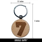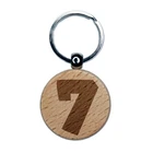 Number 7 Seven Fun Bold Font Engraved Wood Round Keychain Tag Charm