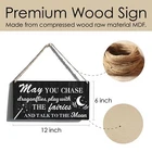 Nursery Sign Gift Farmhouse May You Chase Dragonflies Play with the Fairies Wooden Hanging Sign Plaque Rustic Wall Art Decor for Home Decoration 12 x 6 Inches Product Details Color: may Brand: Qious MPN: decorative plaque UPC: Does not apply EAN: Does not apply Color: may Brand: Qious Material: Engineered Wood, Wood, Ceramic Theme: Funny Recommended Uses For Product: Office Mounting Type: Wall Mount Product Dimensions: 12"L x 6"W Shape: Square Item Weight: 200 Grams Style: Versatile Pre-printed: May you chase dragons, play with the fairies and talk to the moon. Included Components: Pre-cut hanging holes, Twine Item Weight: 7.1 ounces Manufacturer: Qious Country of Origin: China Item model number: decorative plaque Sign Size:Measures approximately 6"x12". Premium Wood Sign: Made from compressed wood raw material MDF. Each sign has 2 pre-cut hanging holes and a length of twine. It is an attractive and versatile country style. Easy Hanging: Installation is extremely easy. Comes with hanging holes and twine so it's ready to hang. Attractive Appearance: This meaningful decoration is suitable for someone who means something to you. Funny signs will make the recipient smile. Natural wood rustic sign, with excellent texture, can hang beautifully. For Gift Giving:Our wooden signs are the perfect gift for loved ones or as a special treat for yourself. It works great, looks great and adds fun to any space in the home, office, classroom, kitchen, bathroom, study, and more. For Gift Giving:Our wooden signs are the perfect gift for loved ones or as a special treat for yourself. It works great, looks great and adds fun to any space in the home, office, classroom, kitchen, bathroom, study, and more.