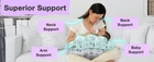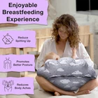 Nursing Pillow - Breast Feeding Support Pillow for Mom and Newborn Baby (CLOUD PATTERN) [Superior Support for Mom and Baby] Experience the ultimate support with this exceptional breastfeeding pillow. It is expertly designed to promote better posture during nursing as it effectively takes the pressure off your shoulders, back, and neck, reducing strain and allowing for a more comfortable and enjoyable breast feeding experience. By relieving these areas of tension, you can fully focus on the precious moments of bonding with your newborn without any discomfort or worries about body aches. [Baby Safety is Our Priority] The innovative cloud design offers excellent security and support, preventing your baby from rolling in or away while breastfeeding. Plus, the unique C-shaped base and the adjustable waist strap eliminates the gap between you and your baby. It securely fastens to your body and ensures that the pillow stays in place while providing a snug fit that promotes stability during nursing sessions. [Free Up Your Hands] This innovative breastfeeding and bottle pillow is designed to amplify your baby's comfort. This pillow also provides a remarkable benefit to mothers - freeing up their hands for other tasks. Imagine having the freedom to tend to your little one's needs while having one hand available for multitasking, whether it's drinking, reading, speaking on phone, or simply enjoying a moment to yourself. Kindly note, this product is intended for supervised nursing only, not for sleep. [Quality You Can Count On] With its 100% cotton, removable and machine washable cover for easy maintenance, covered zipper to prevent any contact with your baby's skin, and filling of 7D polyester cotton which you can add or remove the filling as needed to find your ideal nursing height, it provides a plush yet supportive surface for both you and your infant. Measuring 23.6x 28x6.3 inches, it offers ample space and comfort for a peaceful feeding experience—the perfect companion for every nursing mother.