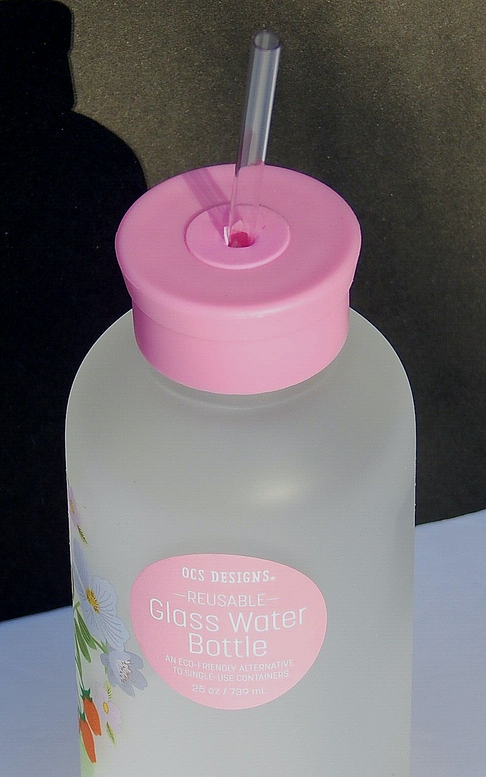 OCS DESIGNS REUSABLE GLASS WATER BOTTLE WITH STRAW ECO-FRIENDLY BRAND NEW 100% AUTHENTIC 25 oz / 739 ml Color: Matte/Multi. BPA FREE SHATTER-RESISTANT BOROSILICATE GLASS DISHWASHER SAFE ECO FRIENDLY- BPA FREE