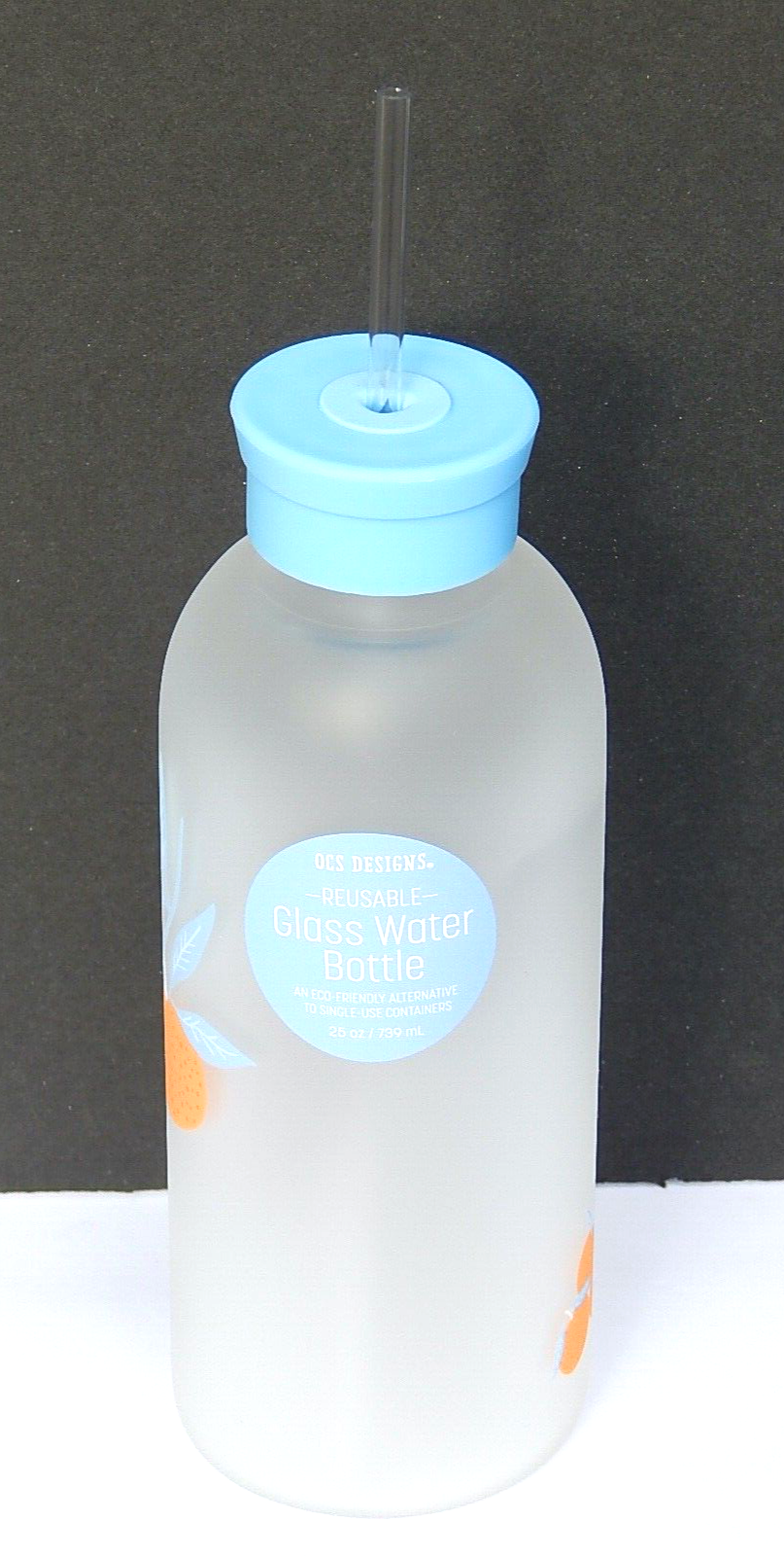 OCS DESIGNS REUSABLE GLASS WATER BOTTLE WITH STRAW ECO-FRIENDLY BRAND NEW 100% AUTHENTIC 25 oz / 739 ml Color: Matte/Multi. BPA FREE SHATTER-RESISTANT BOROSILICATE GLASS DISHWASHER SAFE ECO FRIENDLY- BPA FREE
